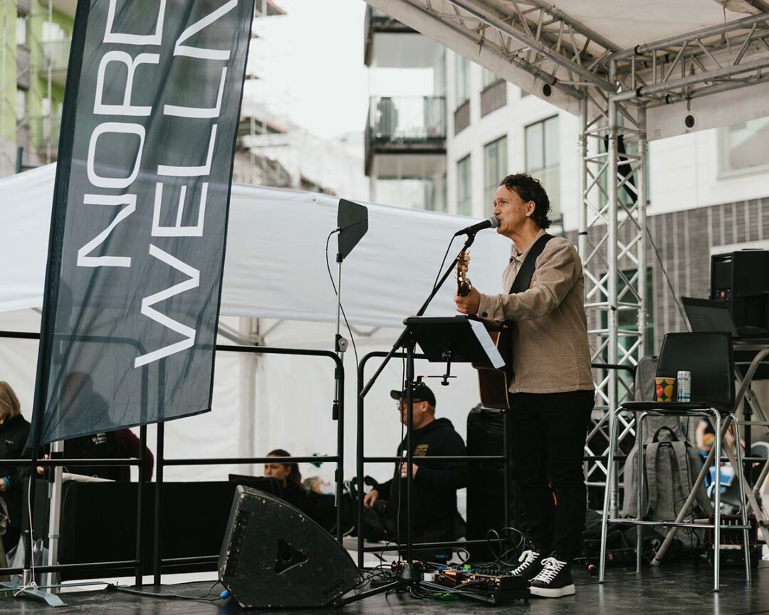 Trubaduren Jonas Astinder bjuder på sång, musik och härlig stämning.