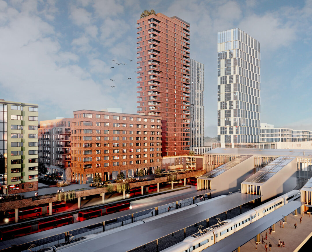 Granne med den nya knutpunkten växer en ny stad fram med bostäder för 35 000 nya invånare, ett nytt kontorsläge med tusentals arbetsplatser, hotell, service och lokaler för kultur, utbildning, idrott och hälsa.